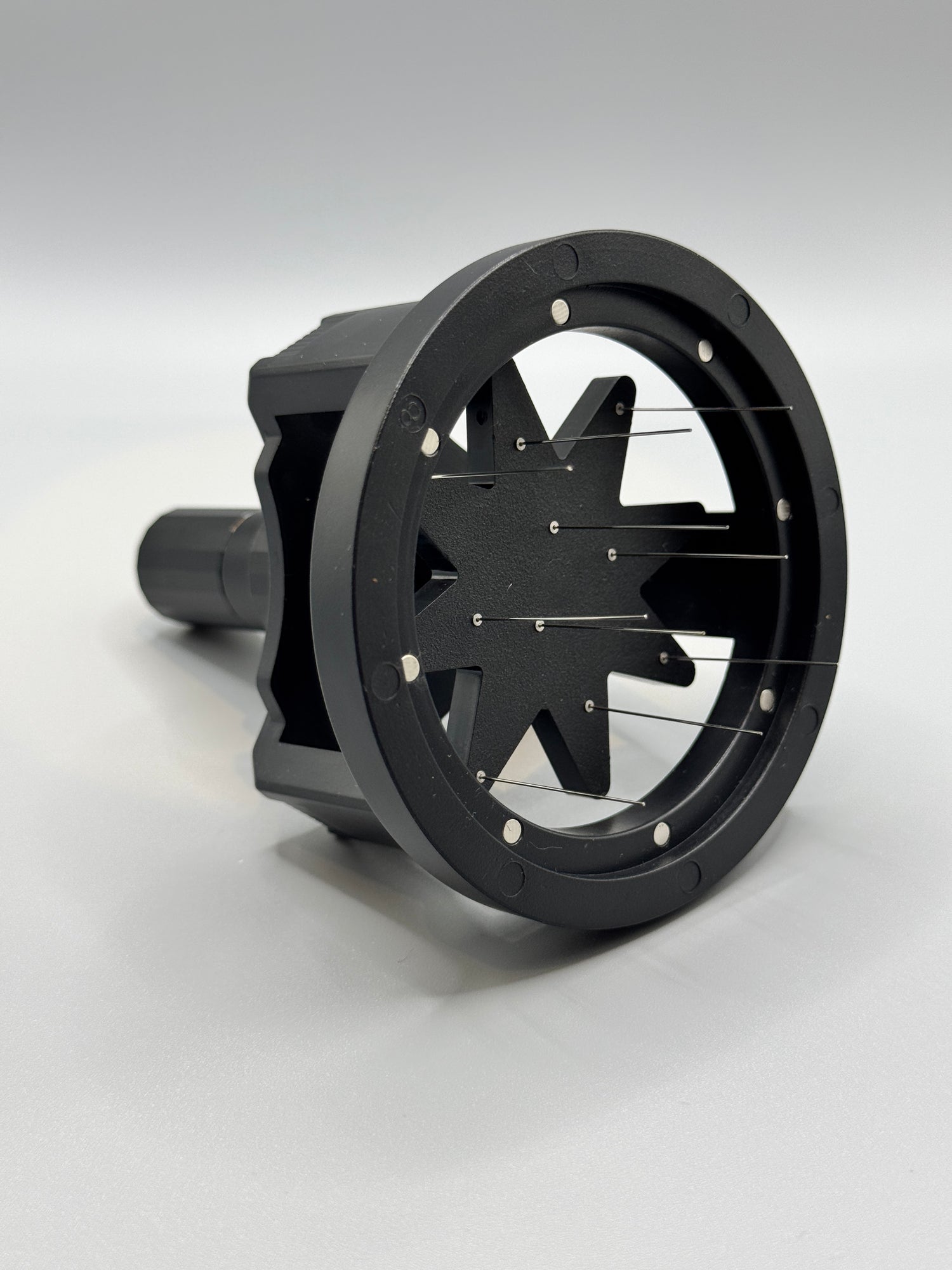 Das Tool besteht größtenteils aus hochwertigem Aluminium, was es leicht und zugleich äußerst robust macht. Der Ring, der sicher auf deinem Siebträger sitzt, ist mit Magneten versehen, sodass das Tool stabil und rutschfest in Position bleibt. Es ist speziell für 58-mm-Siebträger konzipiert und passt damit perfekt zu professionellen Espressomaschinen und Premium-Heimgeräten. Zudem sind die Nadeln in der Höhe verstellbar, sodass du die Verteilung individuell anpassen kannst – für maximale Kontrolle und Präzision.